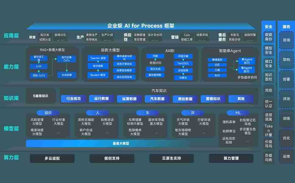 端到端的一站式AI工作空间深度融合了从企业战略规划到日常经营的全流程业务板块,,,定向解决车企内部领域多、、、、部门多、、、链条长、、场景碎片化等难题,,,支持车企快速构建以AI为核心的生产力写作体系,,,,实现任务执行与AI能力的无缝集成与交互