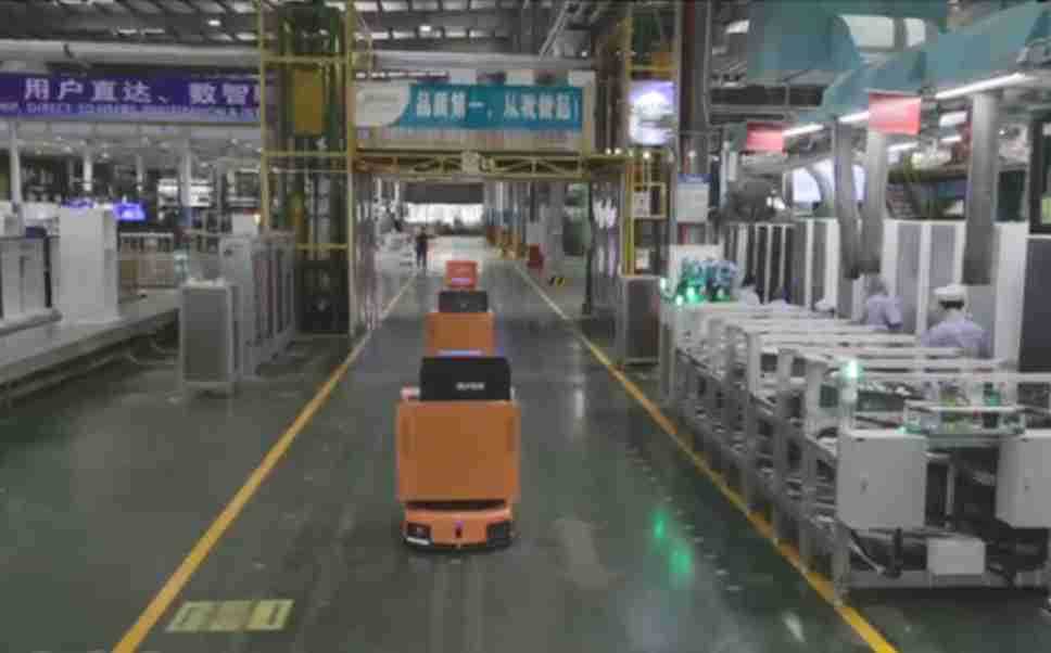 为车载冰箱物流配送打造的智能解决方案,,,包含产中物流通过潜伏举升AMR搬运至线边,,,产后成品物流智能仓储,,,流程包含产中物流智能齐套入库,,,,线边安灯叫料AMR智能配送至线边,,,成品入库、、、、出库,,,通过无人堆高车机器人,,,智能仓储管理替代人工作业管理,,,,实现更高存储、、、、更高效率、、更具柔性化的解决方案。。。